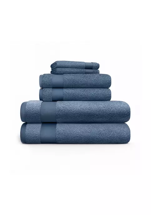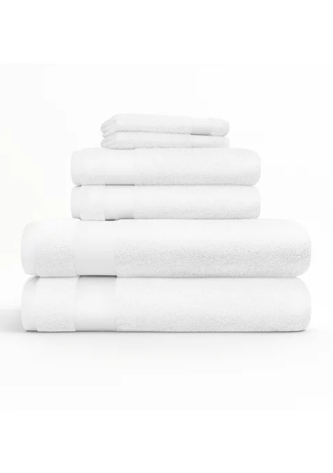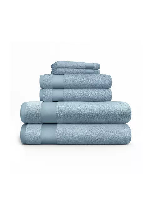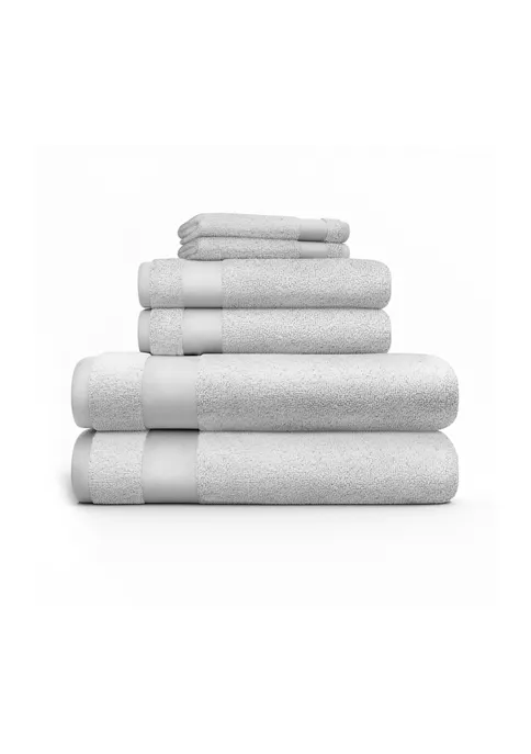 •6 piece set includes 2 bath towels, 2 hand towels, 2 washcloths