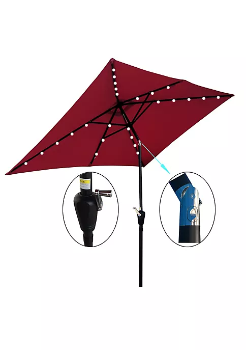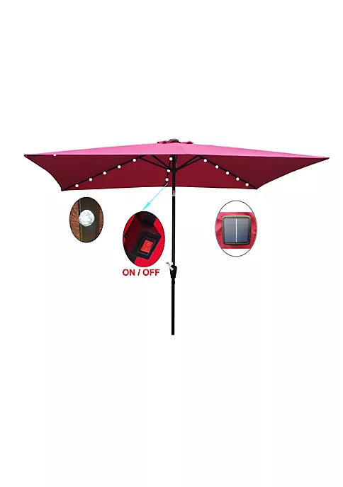 High Quality Material: The 10 ft x 6.5 ft Rectangular Solar LED Market Umbrella is durable. 100% high quality polyester canopy is waterproof, fade resistant and easy to clean. This umbrella has excellent materials and quality, and its waterproof and ultraviolet (base is not included).