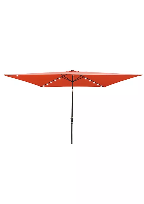 [Energy-Efficient Lighting]: This 10×6.5 ft rectangle LED patio umbrella is designed with solar powered LED lights, adding shade at day and offering light at night to provide a romantic starry night effect for your patio. The umbrella has 26 solar-powered LED lights and an easy on/off switch, Square solar panel at top means the LED lights last 6-8 hours, making your evening illumination magical.