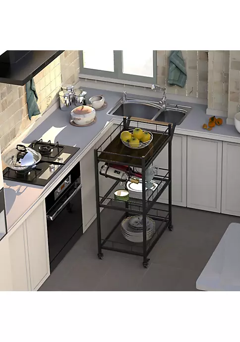 Sturdy Metal construction with wooden board top, adds fun and industrial charm to your life.This rolling carts with wheels is grid design for easy draining and clean.