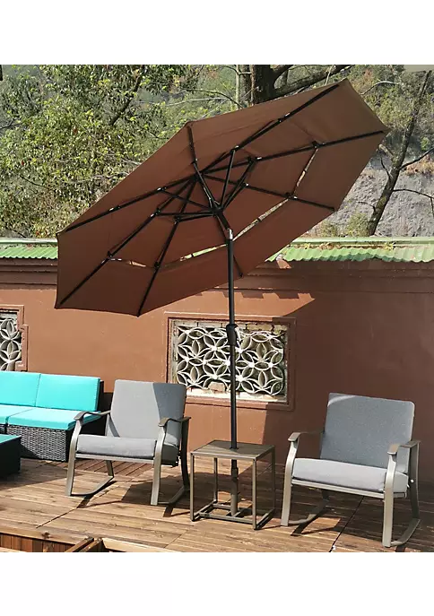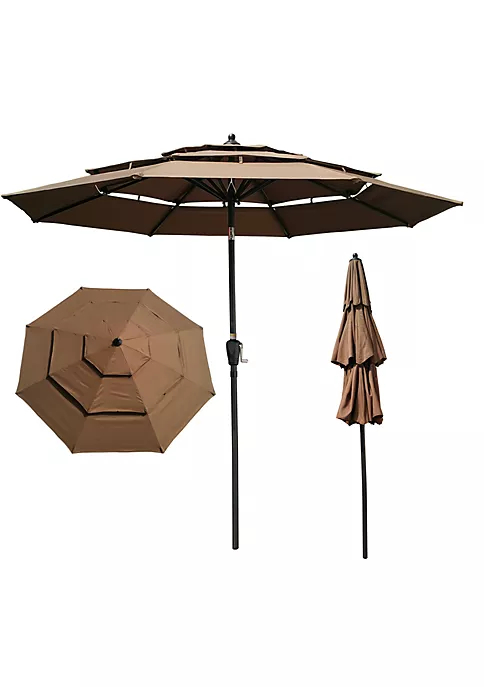 There’s no better way to sit back and enjoy the sun than with this 3-Tiers patio umbrella from us. 100% high quality polyester canopy is waterproof, fade resistant and easy to clean. This outdoor umbrella has excellent materials and quality, and its waterproof and ultraviolet that you don’t have to worry about bad weather preventing you from chatting outside.