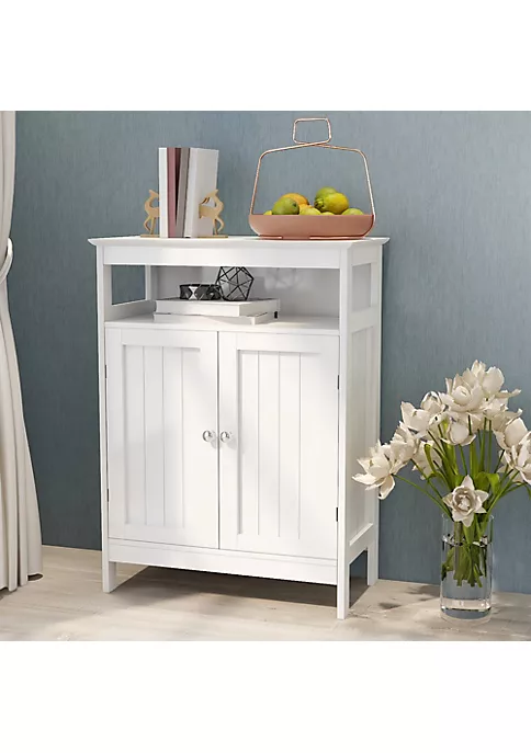 Product Name:Bathroom standing storage with double shutter doors cabinet-WhiteMaterial: E1 MDFFinish:UV paintingColor:WhiteAssemble Required: 60 minPackage cartons: 1 pc