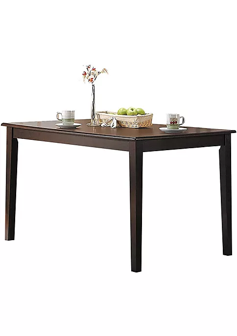 Product Details : KD; Rectangular Leg Table : NO Storage : Fixed Top (NO Extension Included) : Feature: Wooden Top & Apron; Wooden Tapered Leg :: CONSTRUCTION :: Wood Top & Apron: Espresso finish; Wood Veneer+PB : Wooden Tapered Leg: Espresso finish; Rbw :