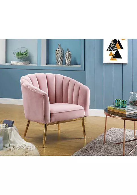Romance : Refined carving with authentic styling; the Colla accent chair is the embodiment of elegance. The thick padded velvet cushion with straight-lined detailing offers superior coziness. Available in pink and blue velvet cushion it is ideal for reading a book on a lazy afternoon or merely lounging in for relaxation.