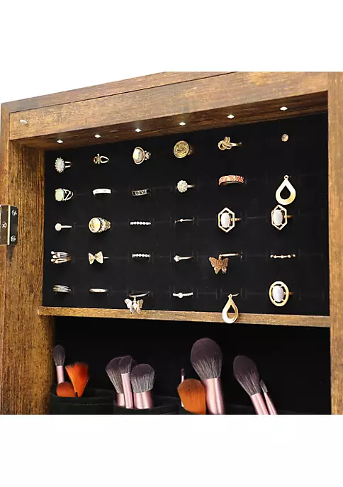 Full-length glass mirror turns on and 6 leds turn on automatically for easy jewelry selection in bright or dim environments