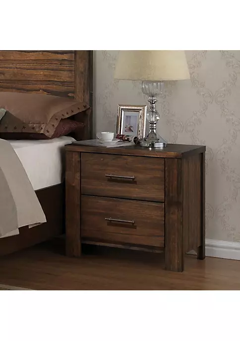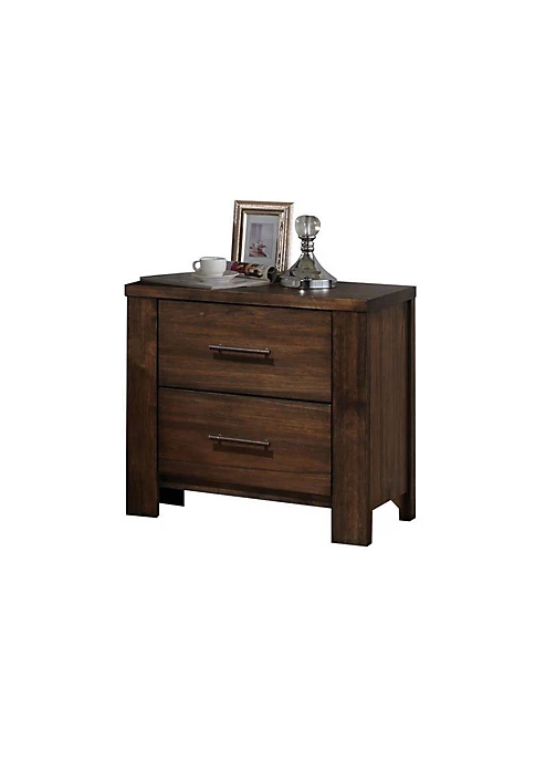 Romance : The Merrilee nightstand features 2 drawers with oak finish. All drawers have English dovetail; center metal glides and antique brass metal hardware. Offers you plentiful storage with spacious drawers