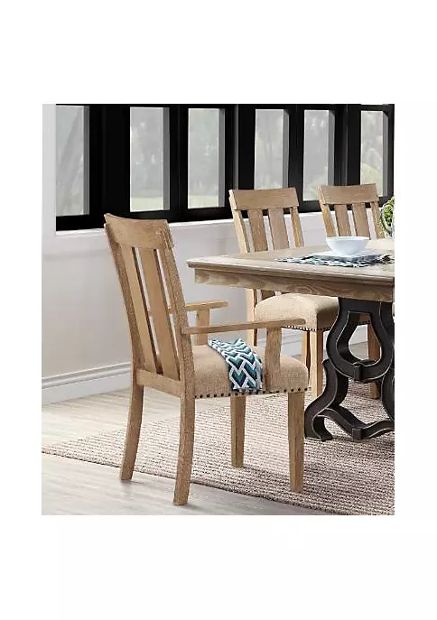 Product Details : KD; Arm Chair (High Back) : Stationary Seat: Standard Dining Height : Padded SEAT: Fabric w/Nail-head Trim () : : Wooden Slatted Backrest: Rbw : Padded Apron Seat (Inner Frame Ply) : Wooden Tapered Leg: Rbw : Wooden Armrest: Rbw