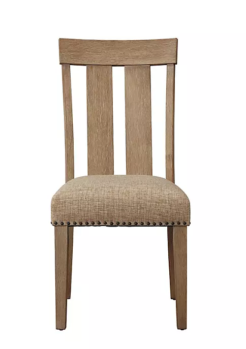 Product Details : KD; Armless Chair (High Back) : Stationary Seat: Standard Dining Height : Padded SEAT: Fabric w/Nail-head Trim () : : Wooden Slatted Backrest: Rbw : Padded Apron Seat (Inner Frame Ply) : Wooden Tapered Leg: Rbw : Armless