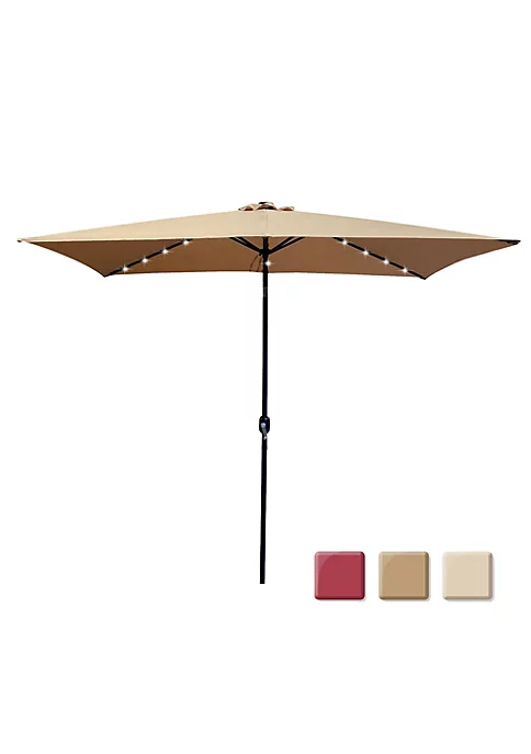 This is a product that has sturdy construction ,WIth 26 solar LED lights. Even on the sunniest day, you can enjoy your outdoor living spaces and remain cooler by using this Patio Sun Shading Umbrella.It is probably the best way to stay outside without absorbing the harmful UV rays of sun, which causes serious sunburns or even skin cancers. At the same time, it is a perfect choice when there is time that rain spotting and you still want to enjoy outdoor scenery and cool breeze.And when the sun falls, eco-friendly & energy-efficient solar powered LED lights with Upgraded solar panel makes it romantic and warm to enjoy night scenery also besides sun shading needs in the day.