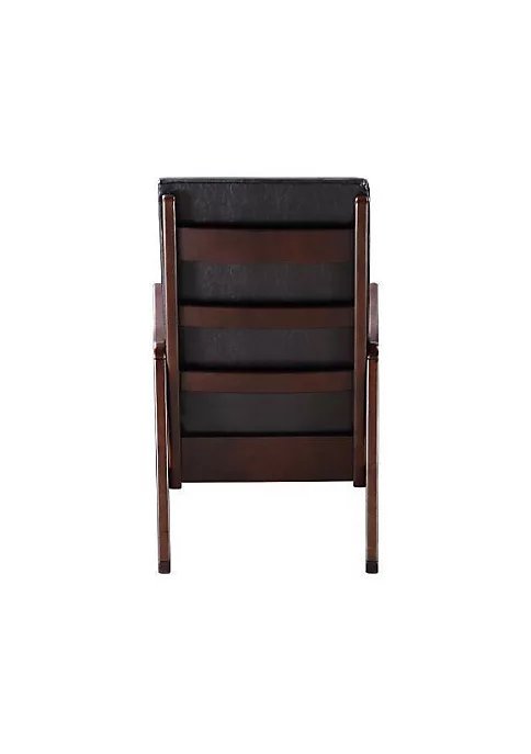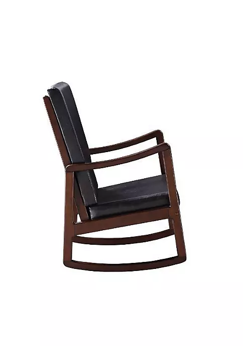 Romance : Calm your mind and close your eyes on this gently rocking chair. With wood curved rocker rails; the Raina Rocking Chair provides the ideal place to sit back and relax. Upholstered seat and back cushion offers you comfortable seating; with faux leather upholstery that gently conforms to your body. Deark brown PU upholstery works perfectly with espresso-finish wooden frame; creating a luxurious appearance for the Raina Rocking Chair.