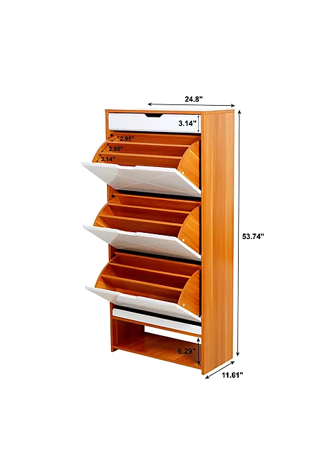 Ladies shoes and slippers cabinet can store at least 20-25 pairs of 3-layer shoes. For men’s shoe sizes, the partitions can be removed and at least 3 pairs of shoes can be placed on each layer.