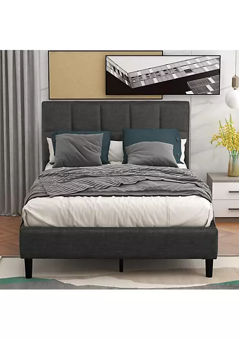 Add more support to your mattress and style to your bedroom with this beautifully designed classic upholstered platform headboard and bed frame.