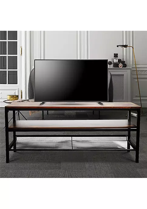 Details[Open shelf] The TV cabinet has 3 layers of large open shelves, each layer can store books, magazines, CDs, remote controls, DVD players, game consoles, sound bars, home theater systems and other media Or gaming equipment. The open design prevents the device from overheating and leaves enough space for the sweeper to enter and exit.[Multifunctional use] It can not only be used as a TV stand, but also very suitable for aisle tables, entrance tables, media shelves, storage console tables, sofa tables, sideboards, etc.[Retro style] The TV cabinet table is made of retro brown wood grain board and black metal frame. This retro industrial design can not only add unique charm to your room, but also perfectly integrate with your other home decoration.[Easy to assemble and clean]-Using instructions and all necessary hardware, you will save a lot of time and energy to complete the assembly of the corridor table. The smooth and smooth surface is easy to clean.[High-quality wood grain surface table] Wood grain and simple lines make this TV cabinet look classic and elegant. The TV cabinet storage cabinet can be easily coordinated with the surrounding decoration, and can be perfectly integrated into the formal living room as in the bedroom, entertainment room or study room.